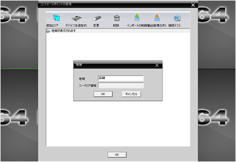 地域が表示されます→追加エリアの順にクリックします。地域の入力欄には任意の名称を入力し、OKをクリックします。(スーペリア領域は空白)