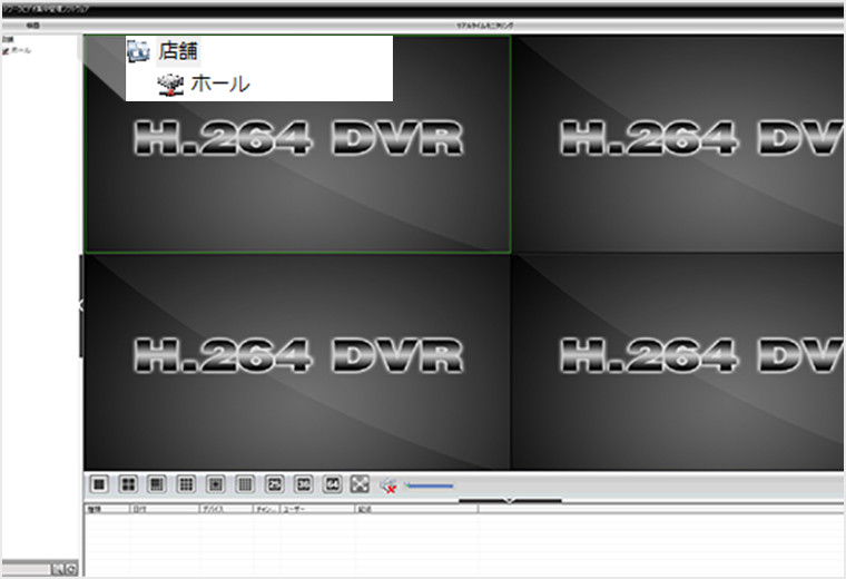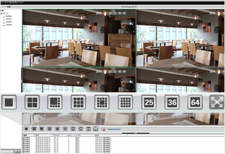 全画面表示したい映像をダブルクリックすると、全画面表示に切り替えることができます。もう一度ダブルクリックすると、分割表示に戻ります。表示切替は、アイコンのクリックでも行うことができます。