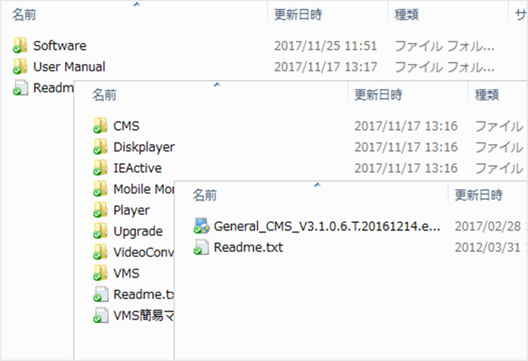 付属のCD-ROMを開き、Software→CMSの中のexeファイルを実行しCMSをインストールします。